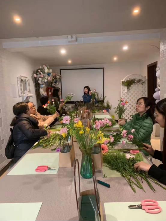 別致的動手體驗讓大家收獲滿滿,在一片歡聲笑語中,大家學(xué)習(xí)很多花藝知識,同時也完成了自己的花藝制作,女神們臉上洋溢的笑容宛如花兒般燦爛